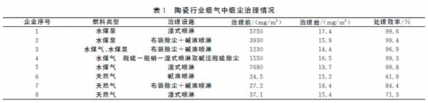 2.1 陶瓷行业烟尘治理情况
