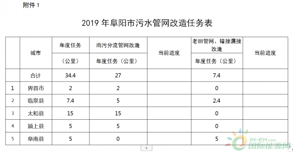 附件:1.2019年阜阳市污水管网改造任务表