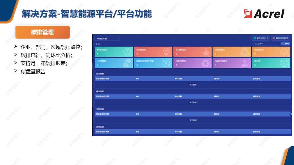 1.感知层(解决“看不见”): IoT物联网智能传感网络,覆盖电、气、热、冷、可再生能源等全能源品类及关键生产设备。 实现全厂区、全流程的能源与碳排数据透明化,秒级采集,形成数字镜像。